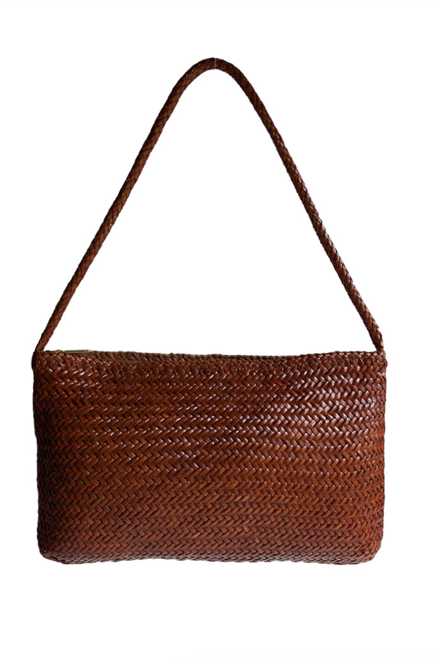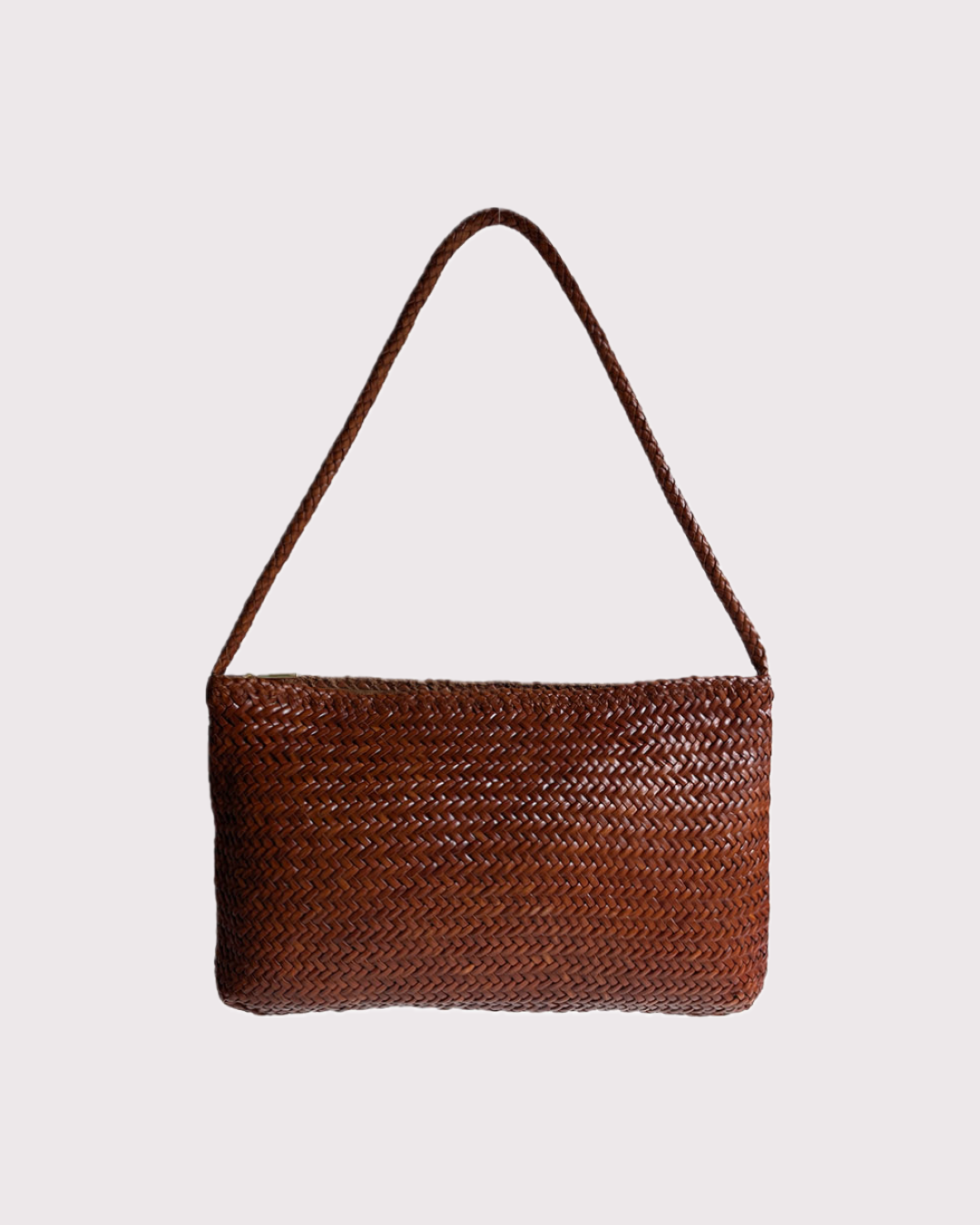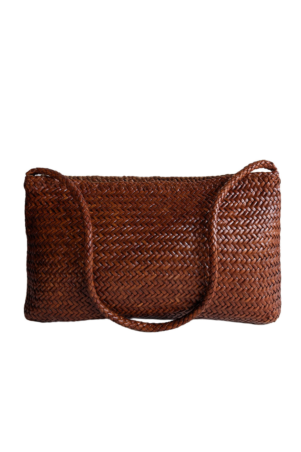 ALĒO Nina - Toffee. Handwoven shoulder tote crafted with chevron weave. Top grain buffalo leather handbag .Hand Crafted using 100% traceable, ethically sourced leather.