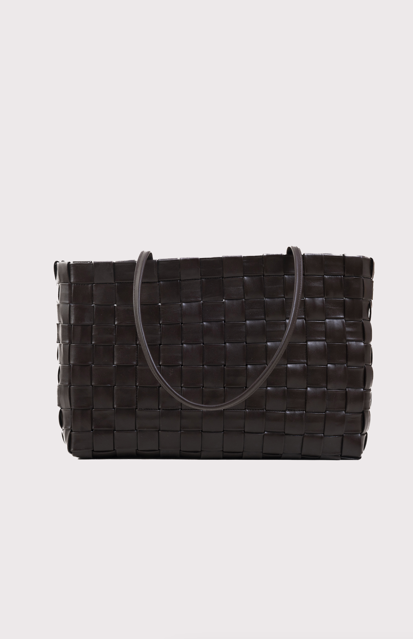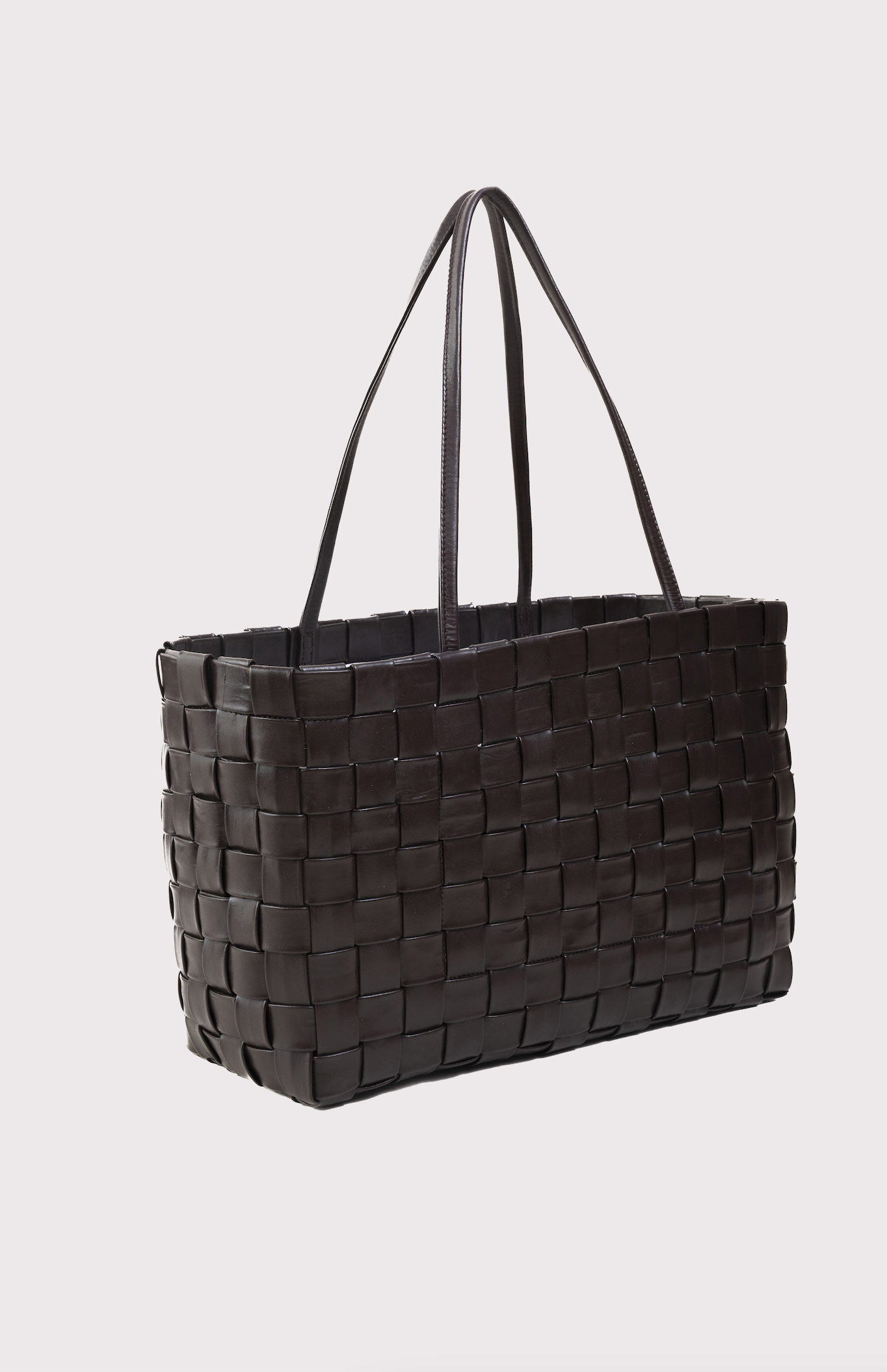 - Handwoven box weave shopper with shoulder straps featuring spacious interior.