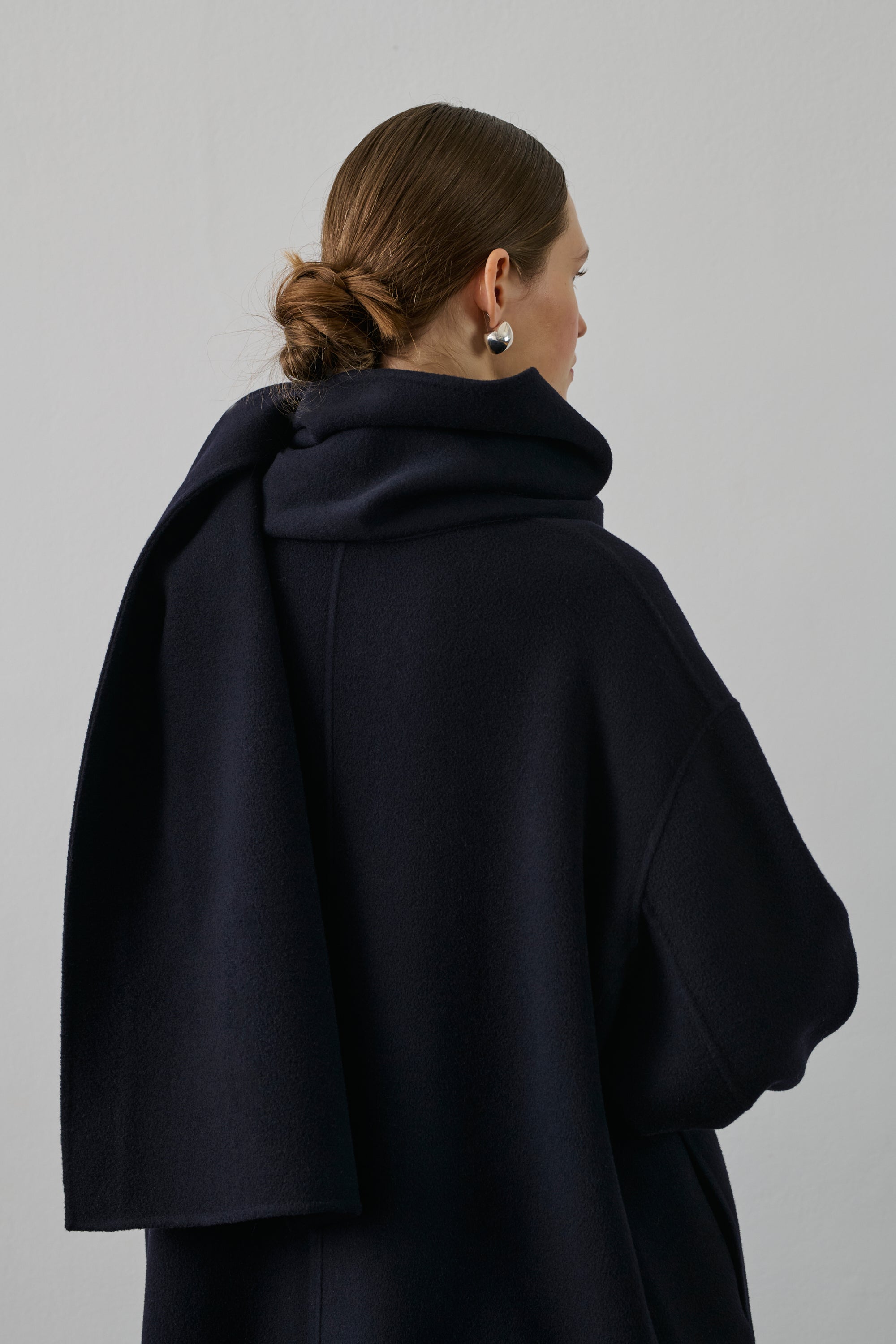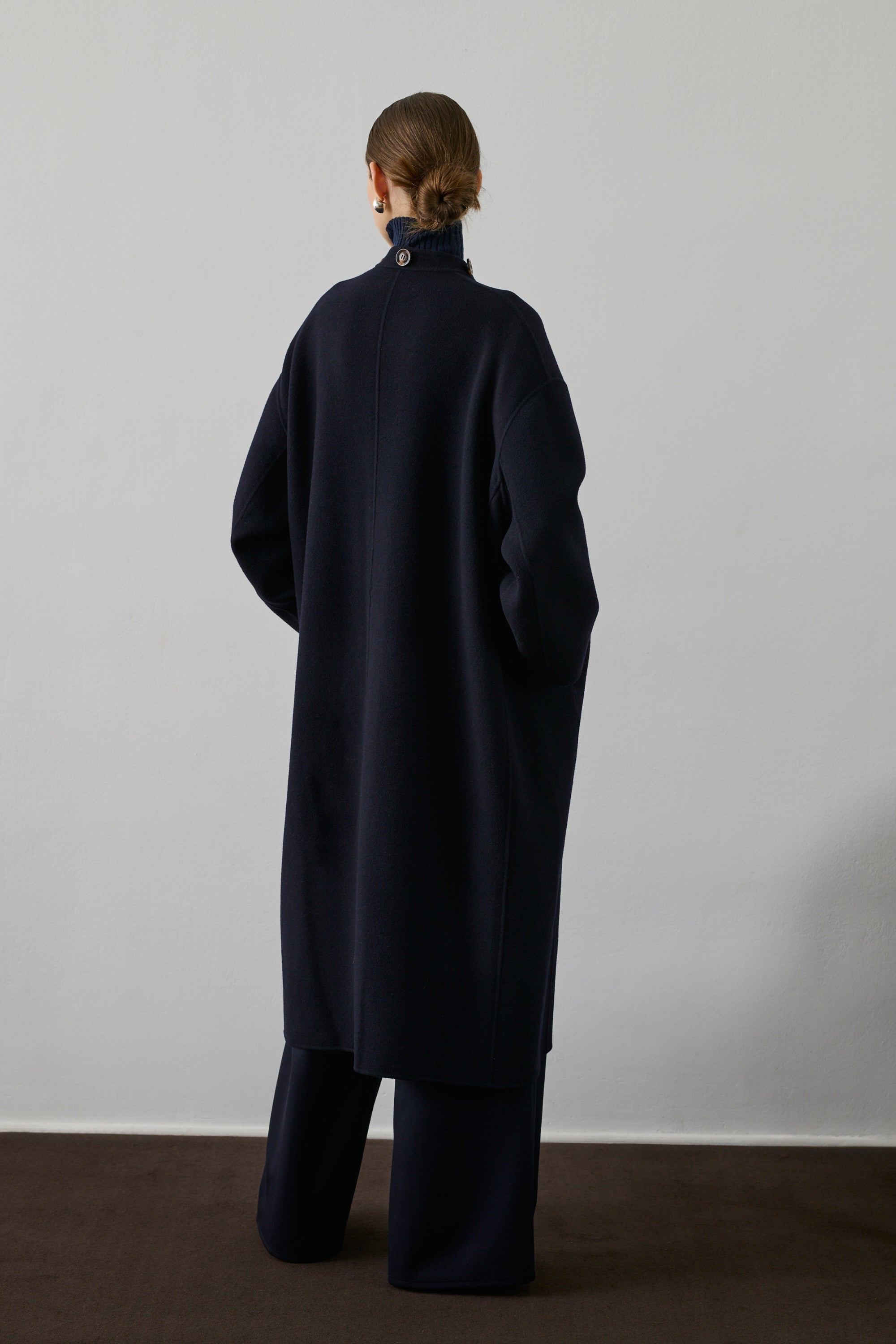 SOEUR FINN Coat - Deep Navy. Long coat in deep navy blue double face