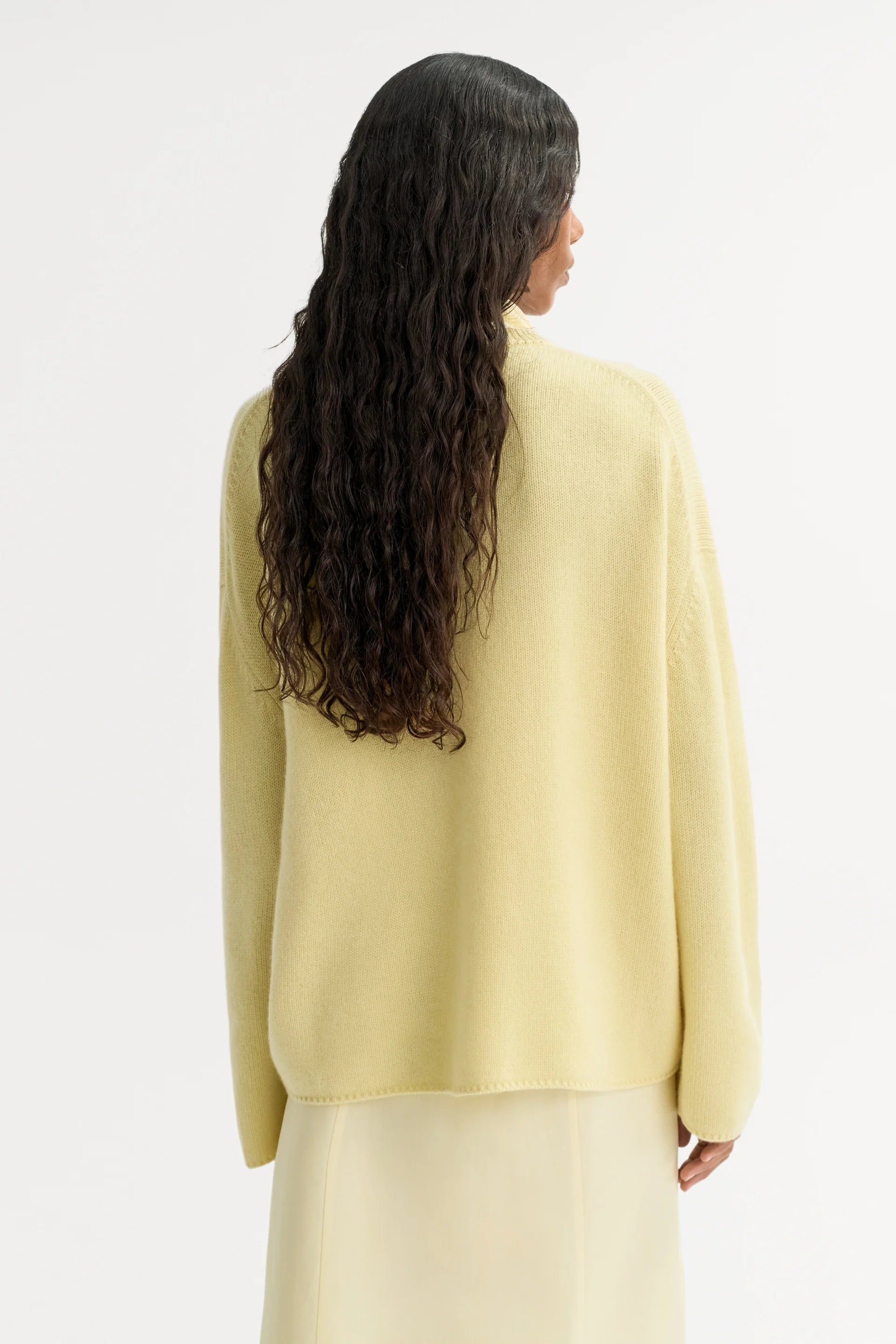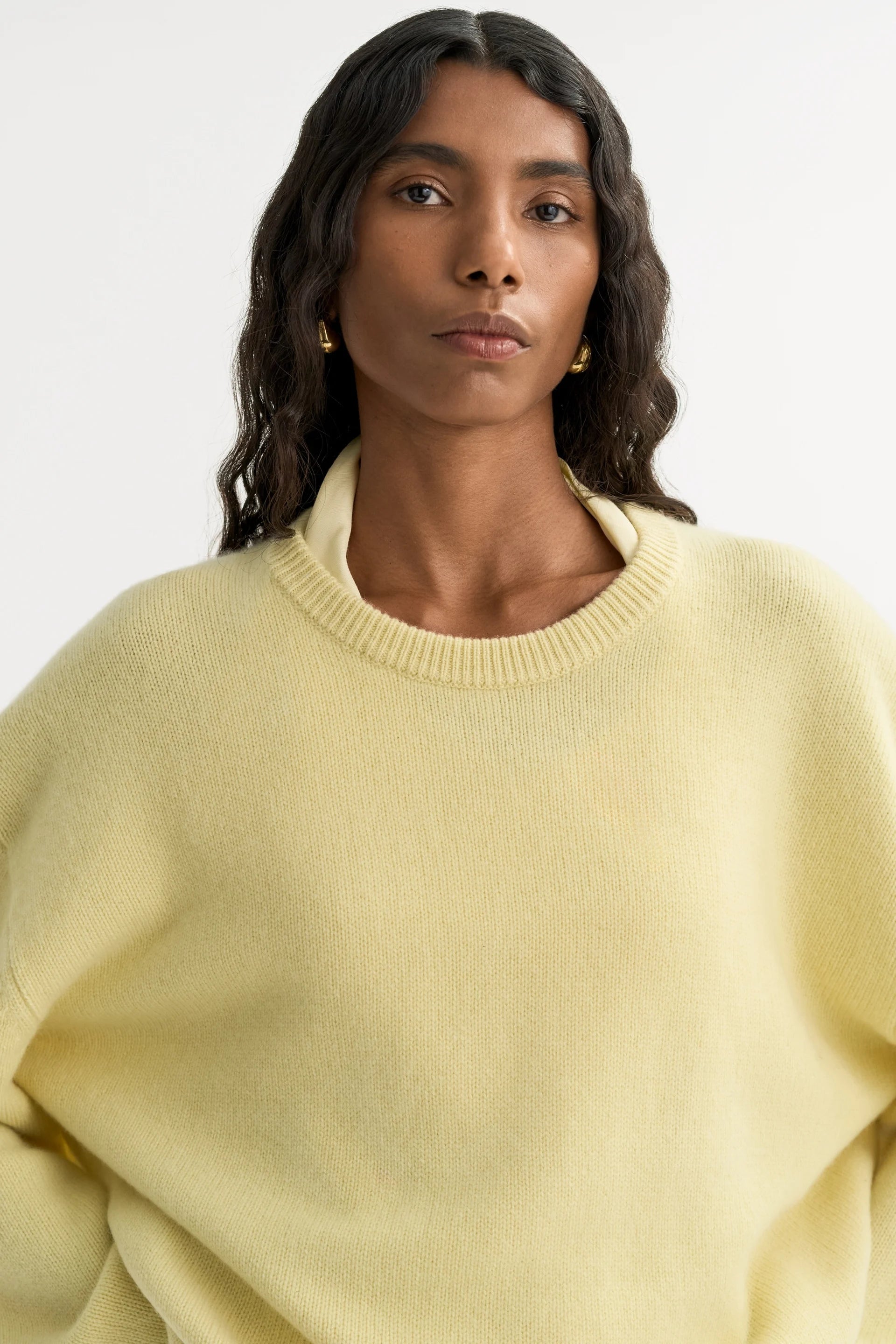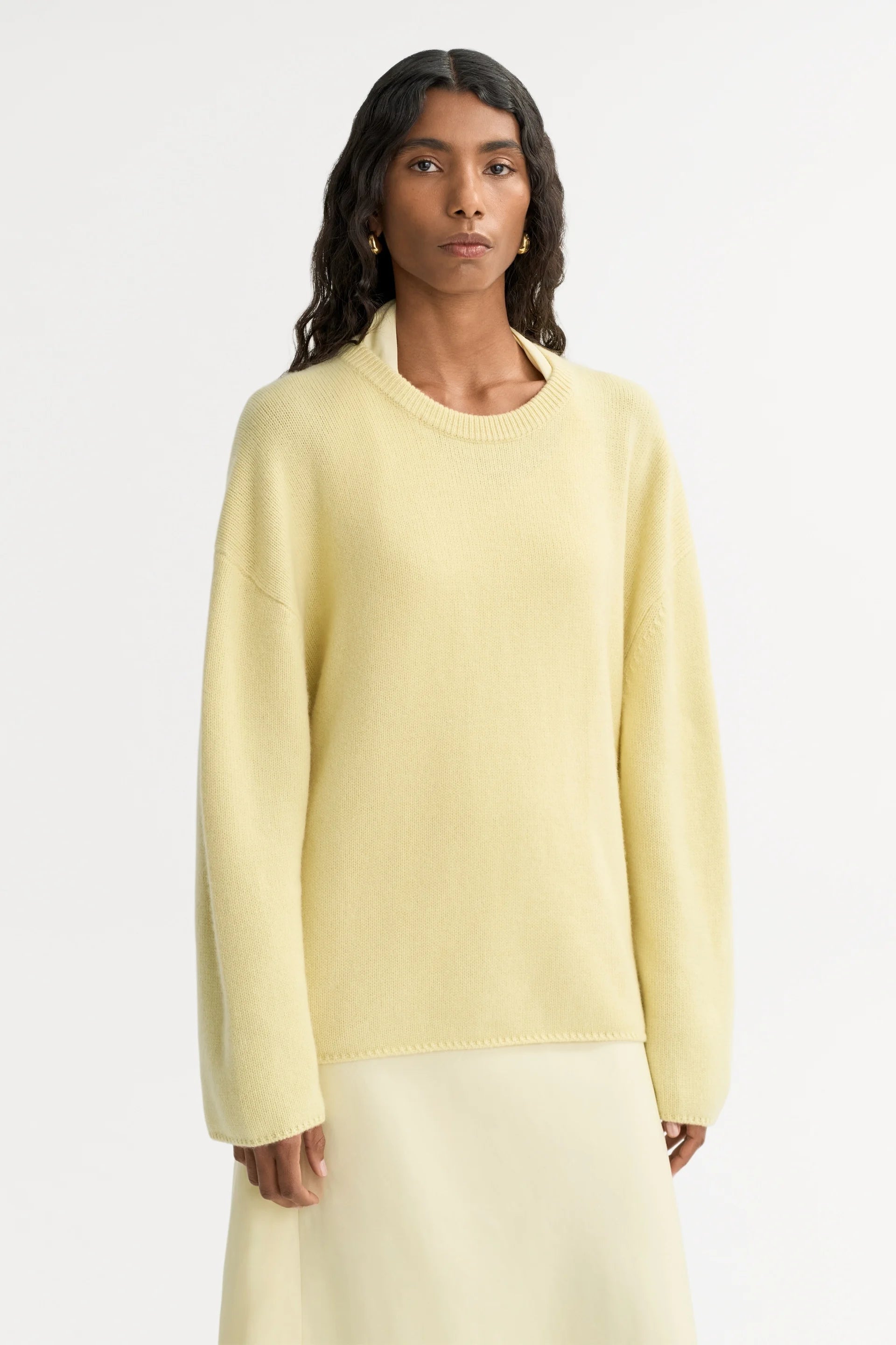 SOFT GOAT Relaxed fit Crewneck - Honeydew Yellow. Relaxed chunky knit crewneck in 100% cashmere.