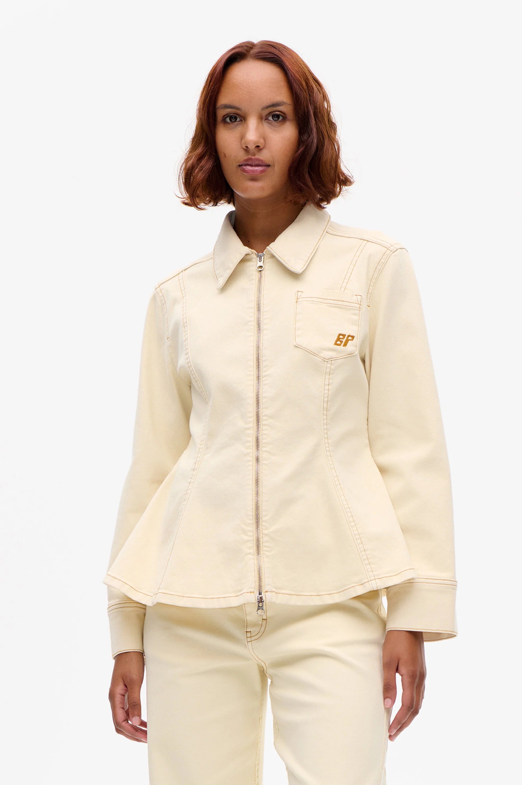 BAUM UND PFERDGARTEN Bilan - Afterglow. The Bilan Jacket is made in organic cotton, the jacket has a relaxed fit that’s shaped at the waist to create a subtle flare at the hemline. Finished with a classic collar, chest pocket, logo leather patch and a 2-way zipper.